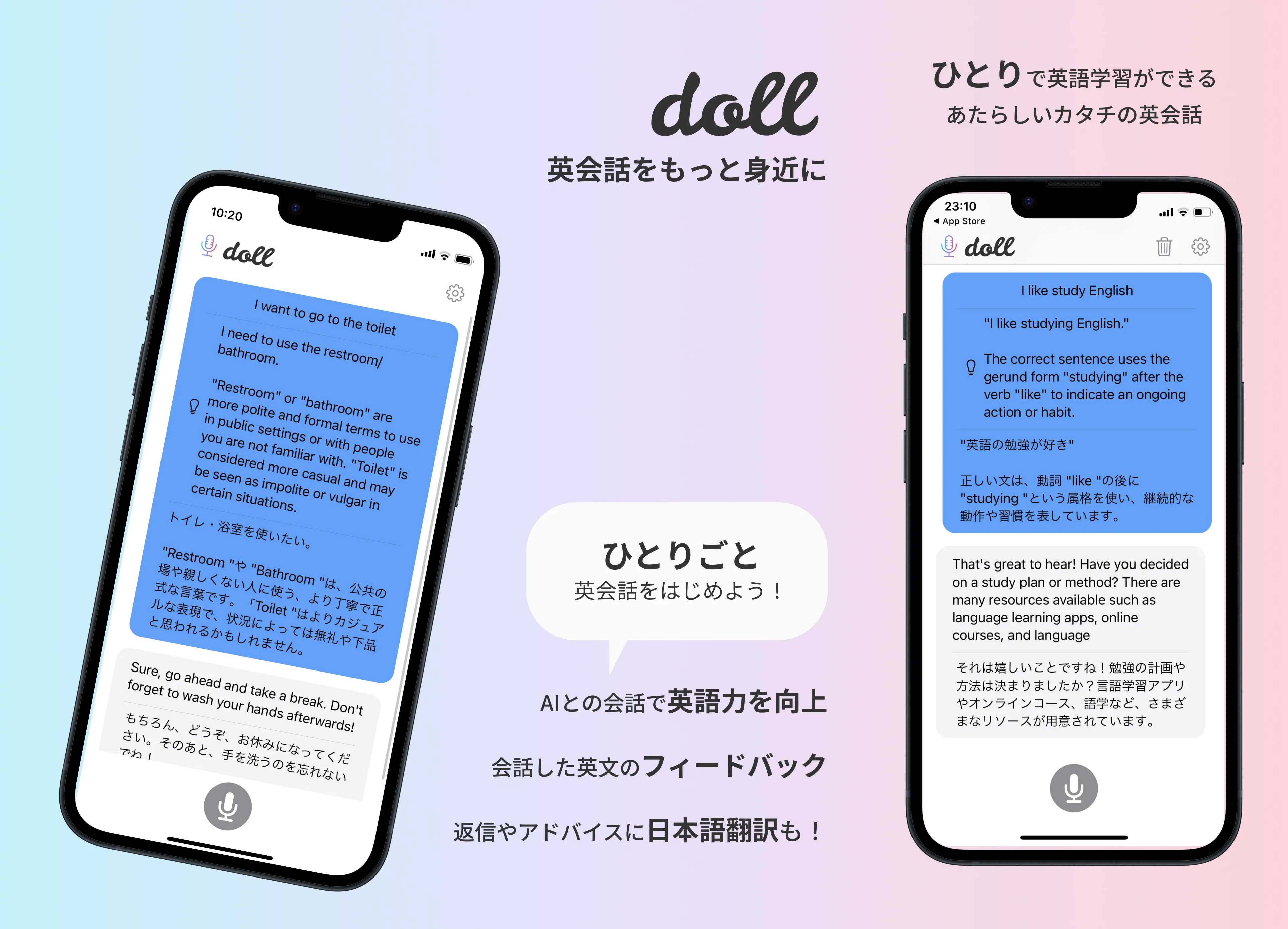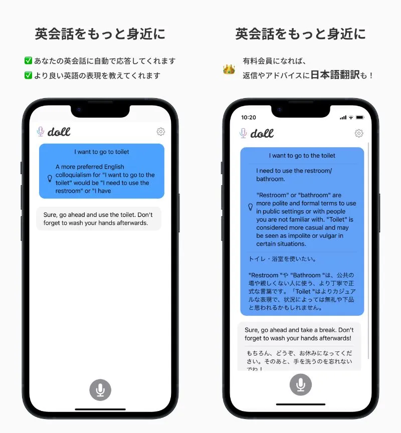 話題のChatGPT API を利用して、英会話iOSアプリdollを開発しました。基本機能はiPhone のマイクに話しかけることで、Botと英会話をできるというものです。